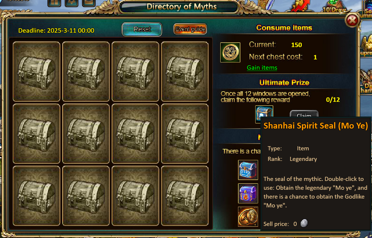Consume 1,000 gold coins: Lunar Chest (Epic)*1, Chaotic Wastes Ticket*3, Tender Steak Fragment*10