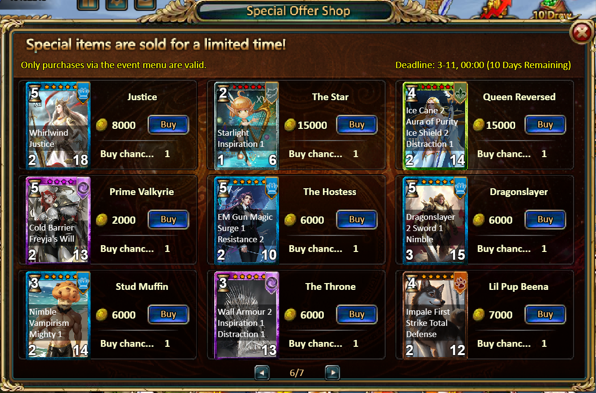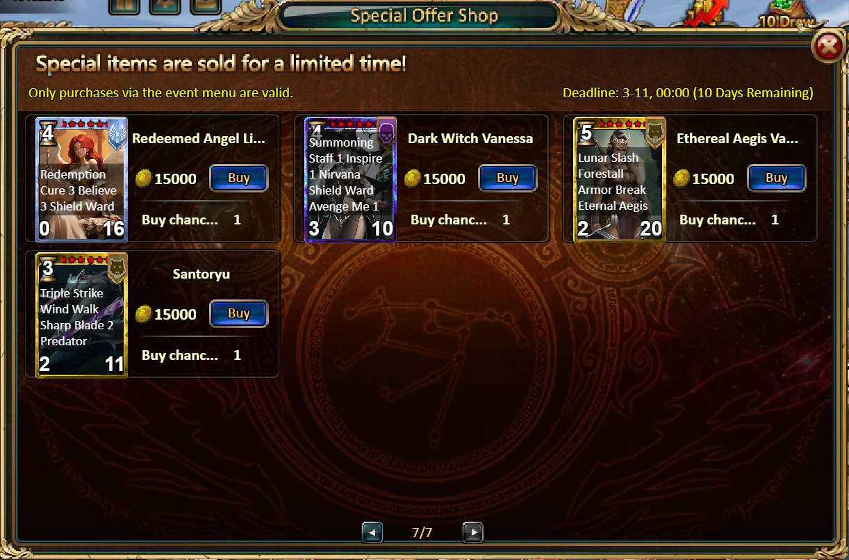 Consume 500 gold coins: Starlight Chest (Epic)*1, Chaotic Wastes Ticket*2, Bread Fragment*10