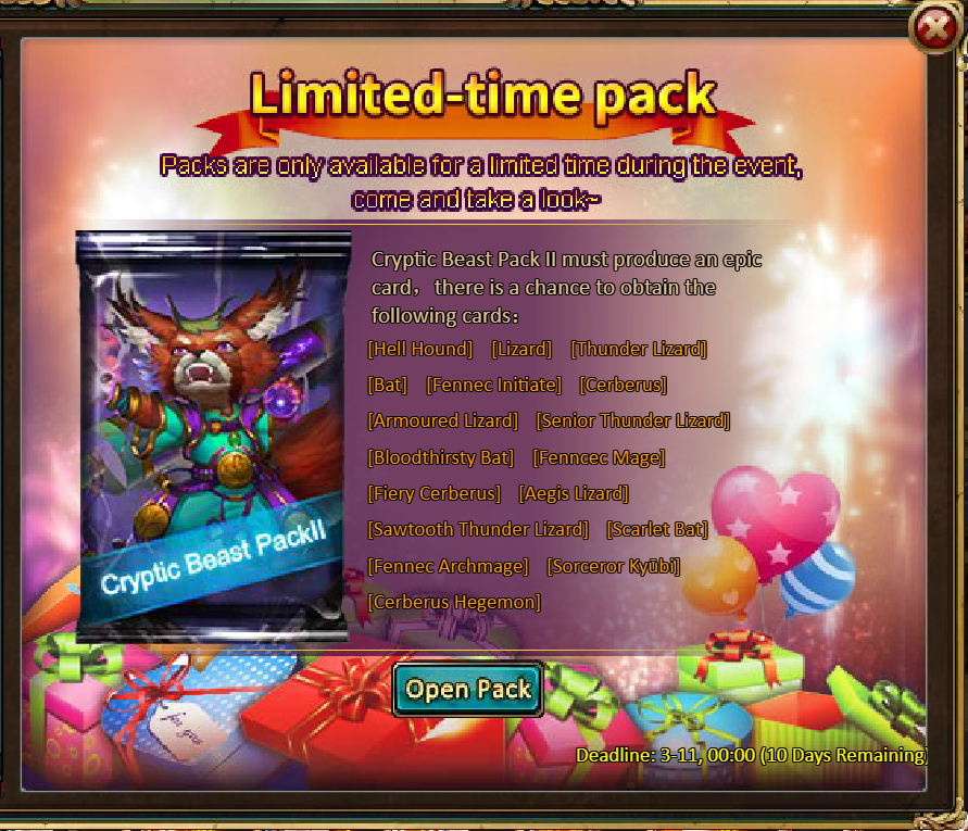 [b]8.Pack (Limited Time Event) - Booster Bonanza[/b]