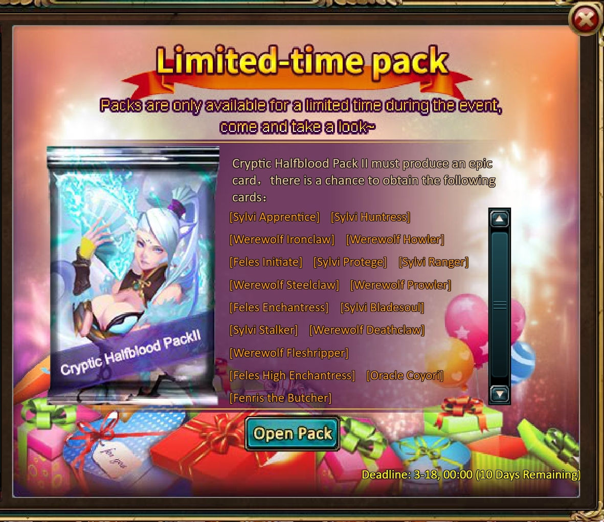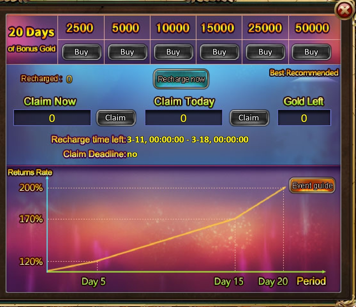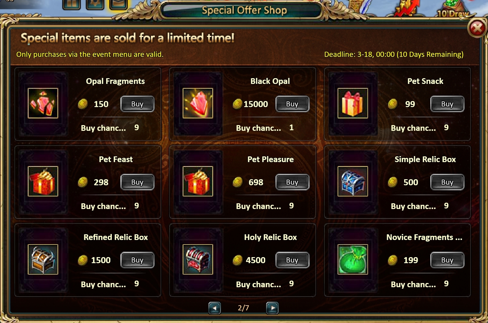 Consume 50,000 gold coins: Black Opal*1, Solar Chest (Legendary)*2, Pet Pleasure*5[/u]