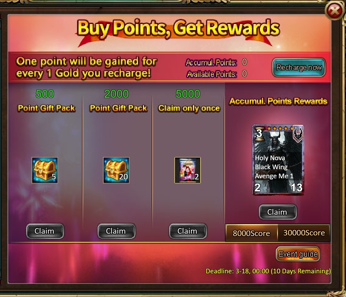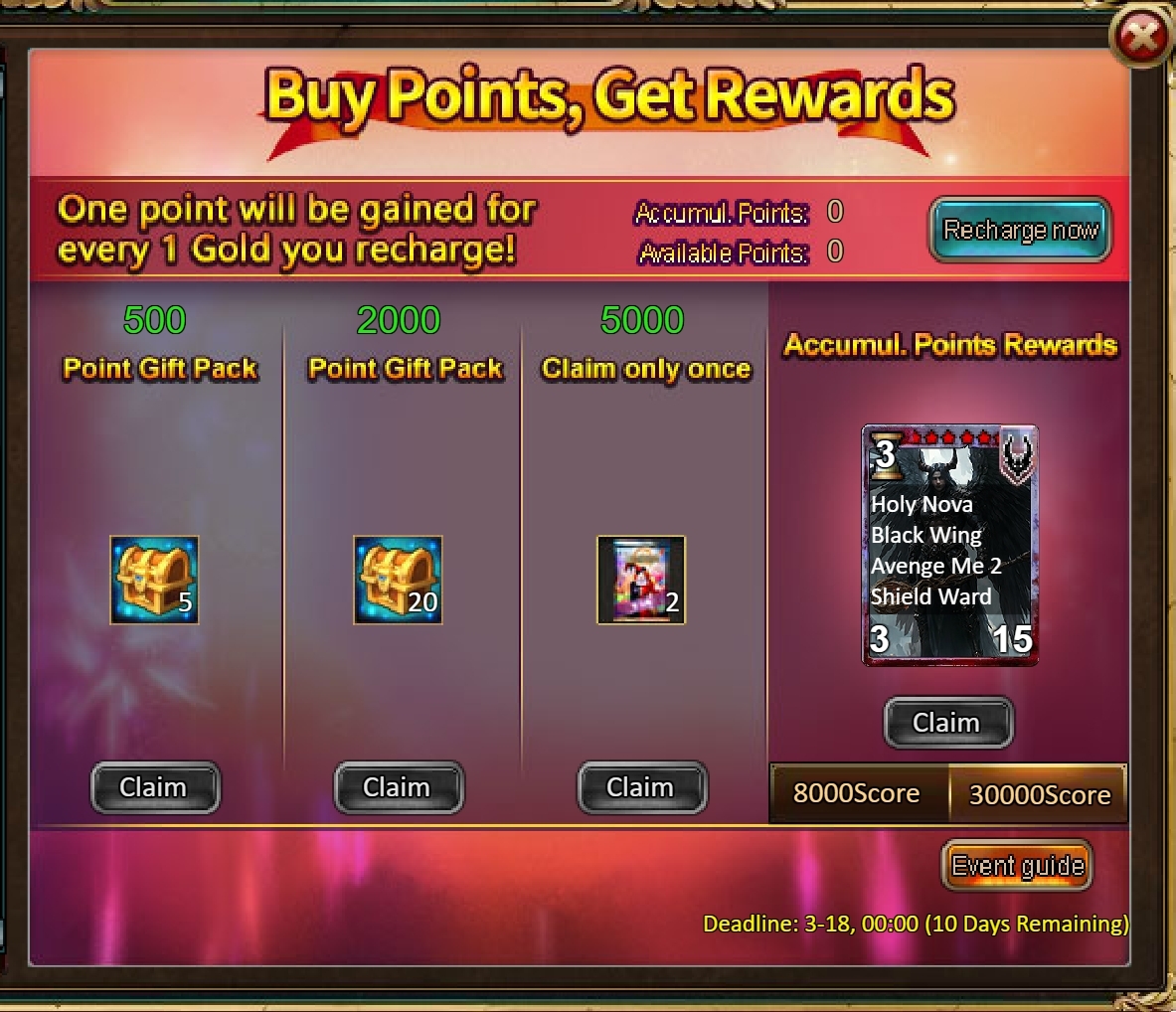 2.Buy Points, Get Rewards: 8000 - Kosh (Legendary) / 30000 - Kosh (Godlike)