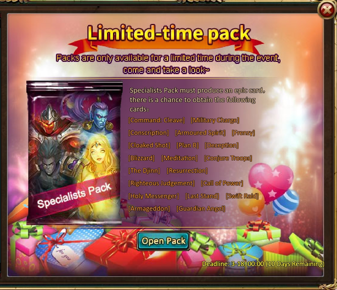 [b]7.Pack (Limited Time Event) - Booster Bonanza[/b]
