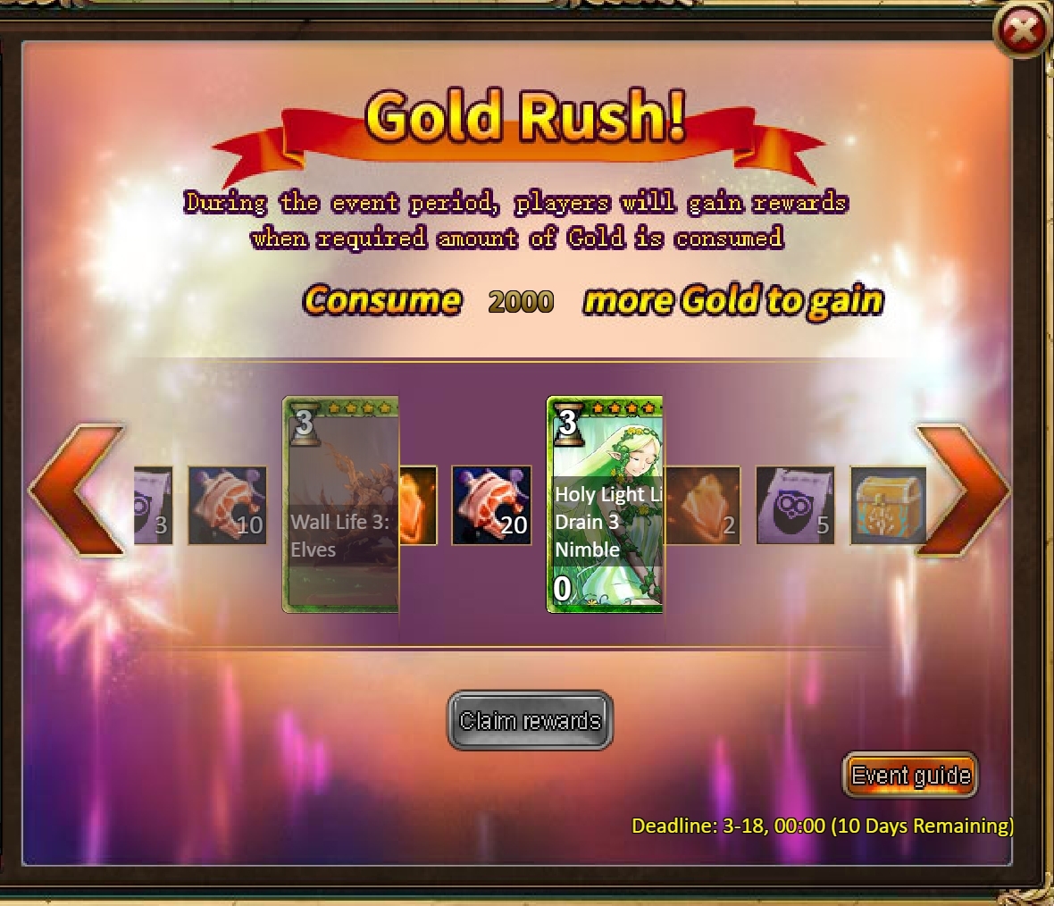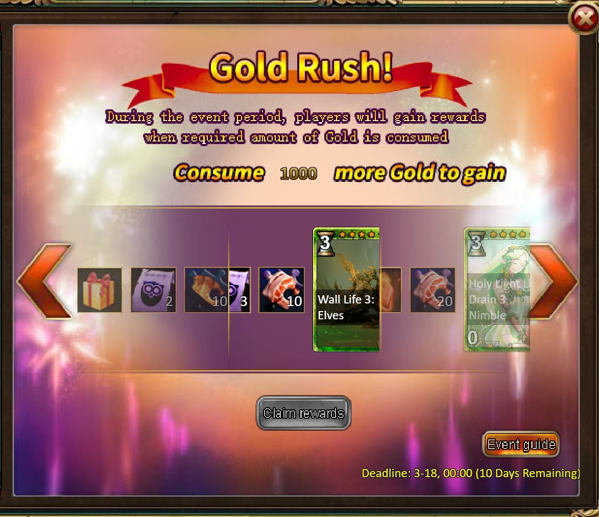 Consume 5,000 gold coins: Legendary Box*1, Fire Opal*2, Pet Magic Realm Ticket*5