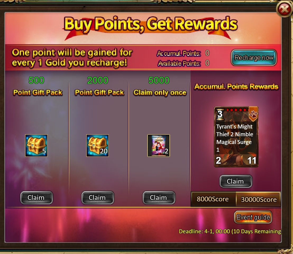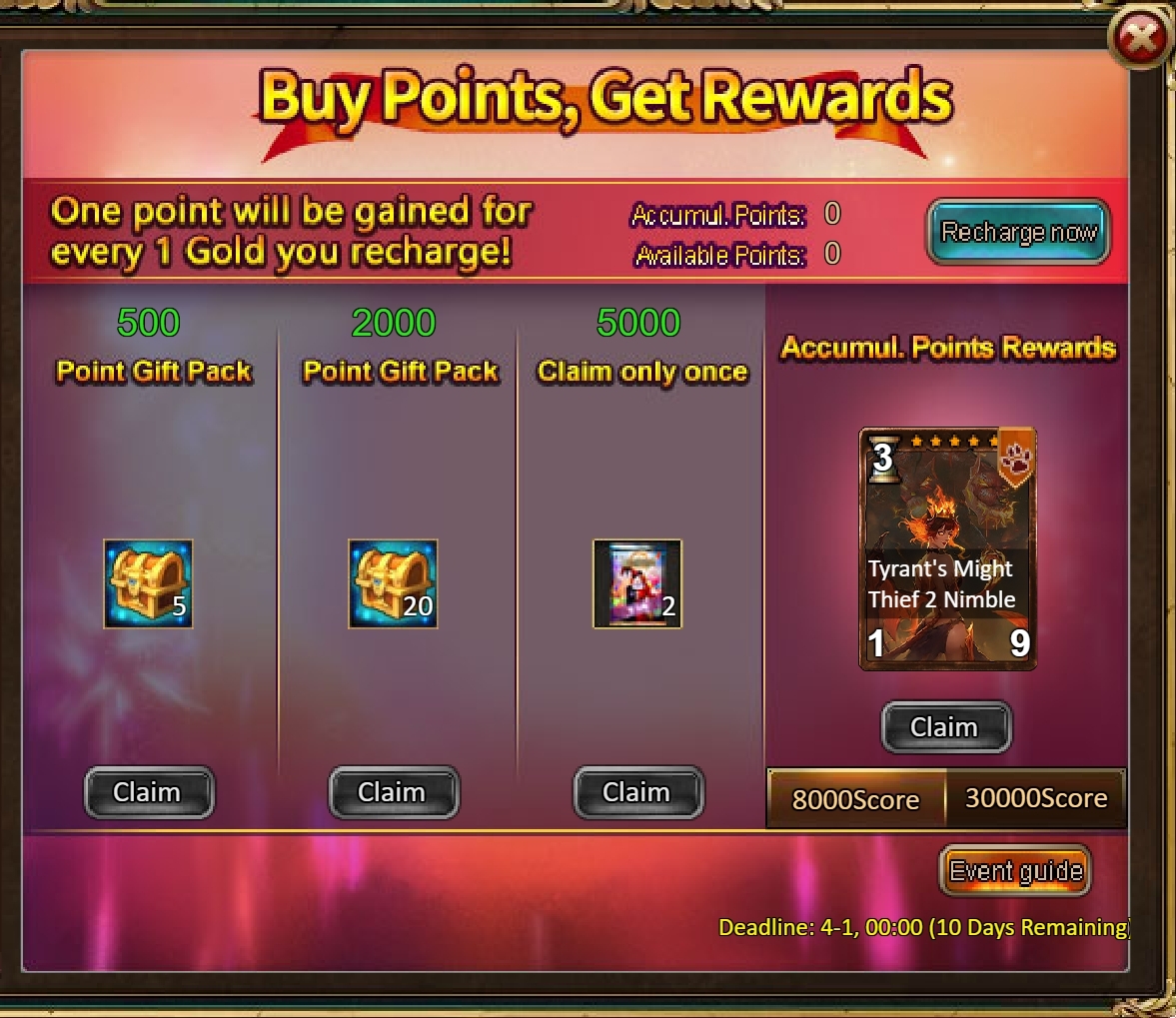 2.Buy Points, Get Rewards: 8000 - Pepper, The Tyrant Queen (Legendary) / 30000 - Pepper, The Tyrant Queen (Godlike)