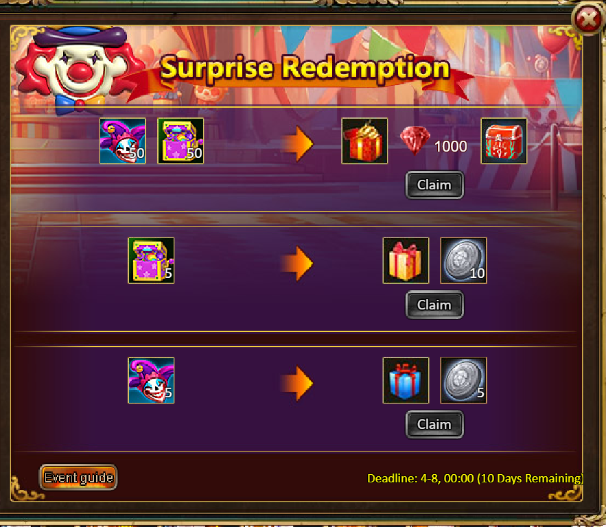 [b]Surprise Redemption: Collect the specified exchange materials to redeem corresponding rewards.[/b]