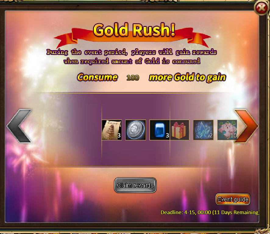 [u]Consume 100 gold coins: Tower Ticket*3, Silver*10,000, Rare Gem*3