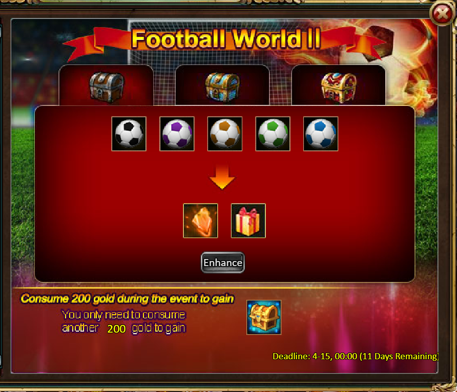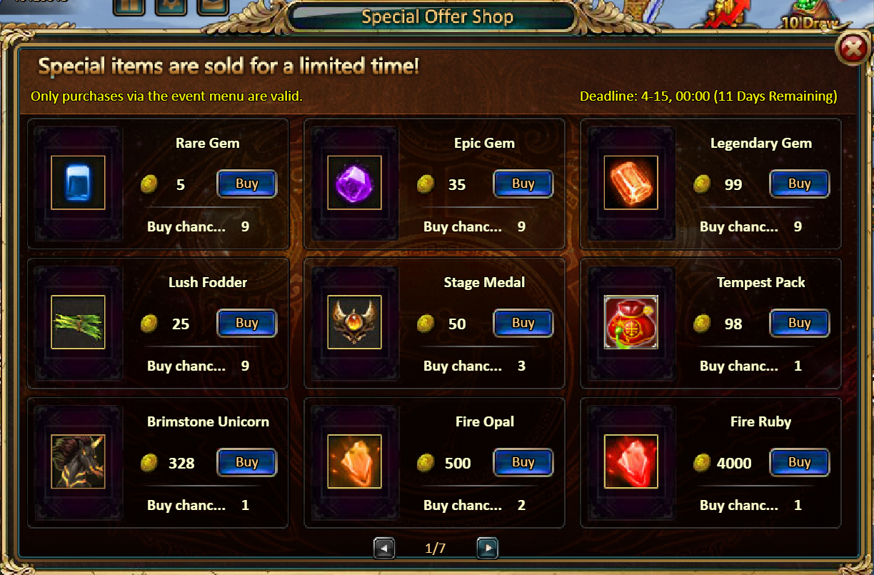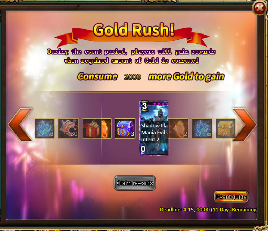 Consume 5,000 gold coins: Legendary Box*1, Fire Opal*2, Crystal Gift Pack*5