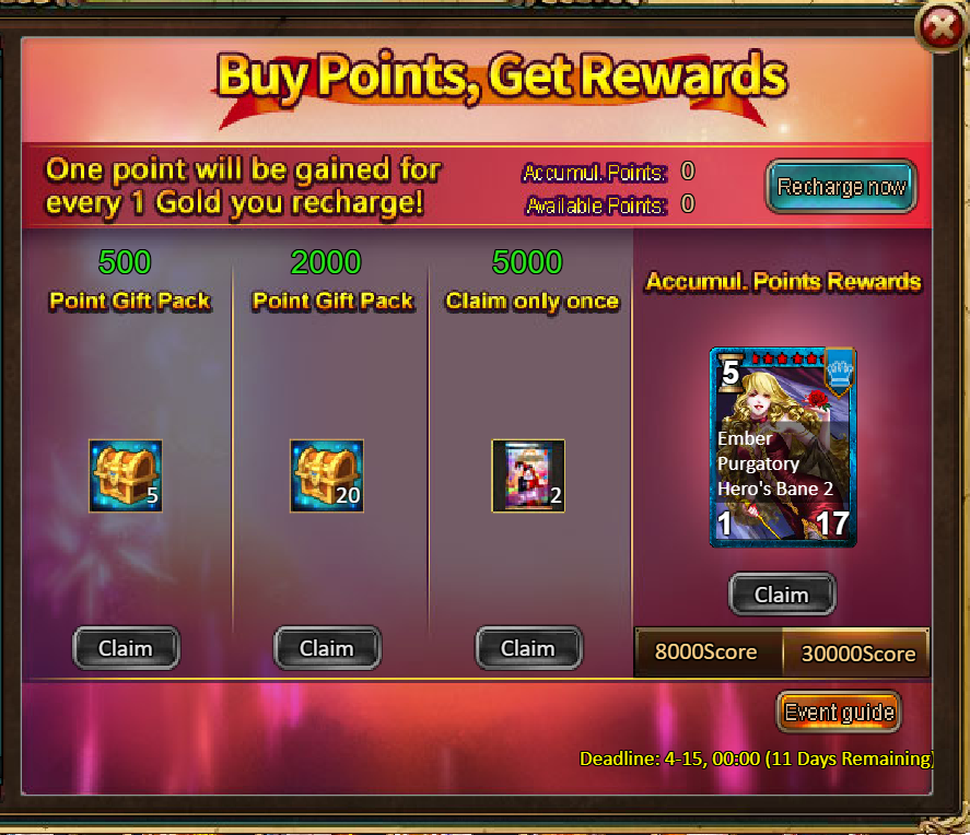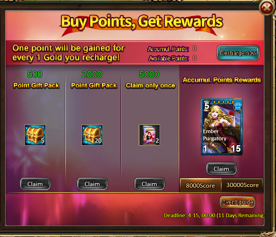 2.Buy Points, Get Rewards: 8000 - General Nina (Legendary) / 30000 - General Nina (Godlike)
