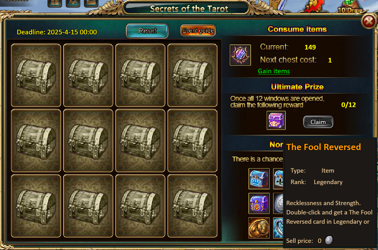 Consume 2,000 gold coins: Skill Box (Epic)*3, Fire Opal*1, High Necromancer (Epic)*2