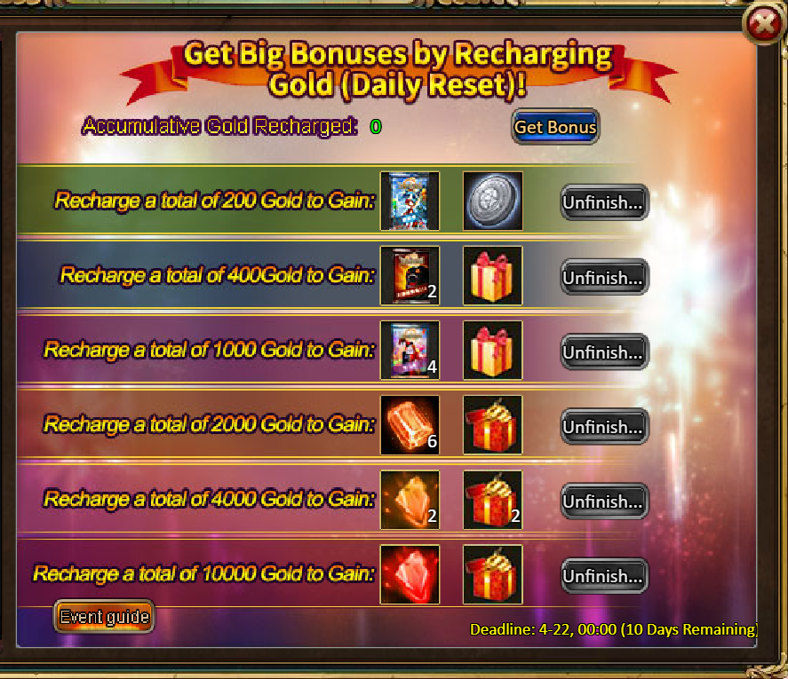Consume 10,000 gold coins: Gujaret (Legendary)*1, Solar Chest (Legendary)*1, Silver*1,000,000