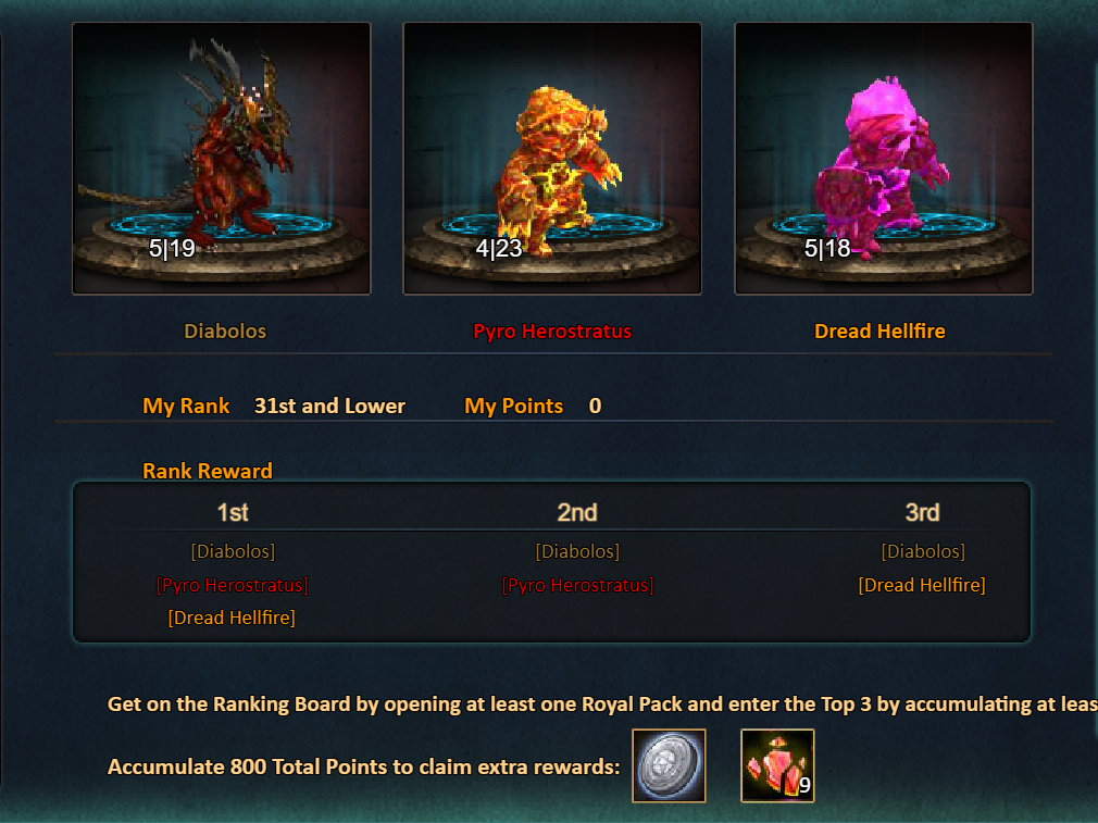 Consume 50,000 gold coins: Black Opal*1, Solar Chest (Legendary)*2, Pet Pleasure*5[/u]