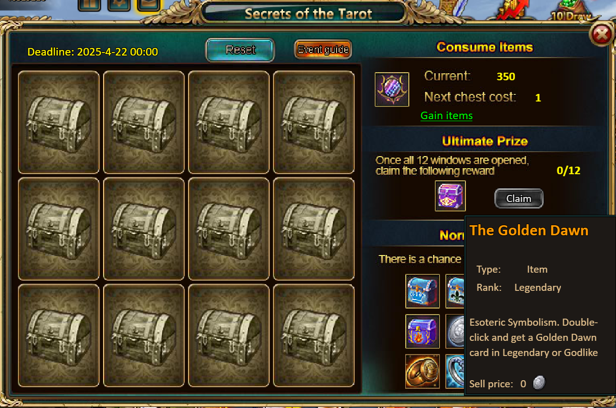 Consume 10,000 gold coins: Gujaret (Legendary)*1, Solar Chest (Legendary)*1, Pet Pleasure*1