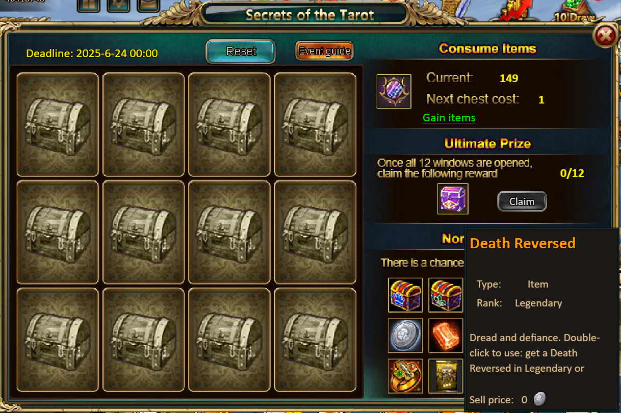 2.Increased rewards for [b][Secrets of the Tarot][/b] and [b][Directory of Myths][/b] events — now with a chance to obtain Imperial Legendary Box and other rare prizes!