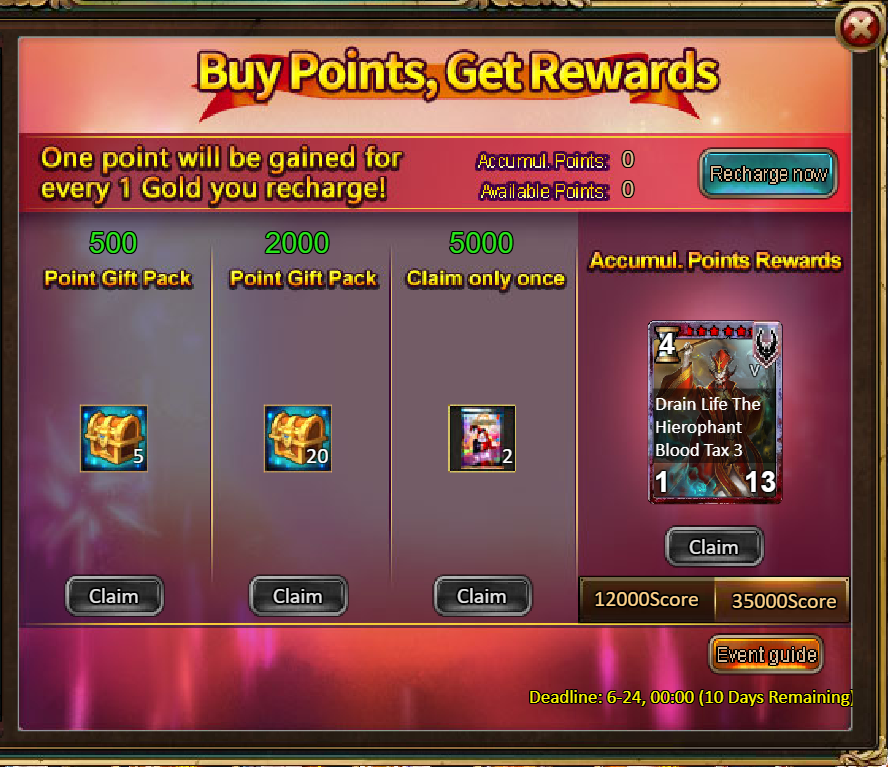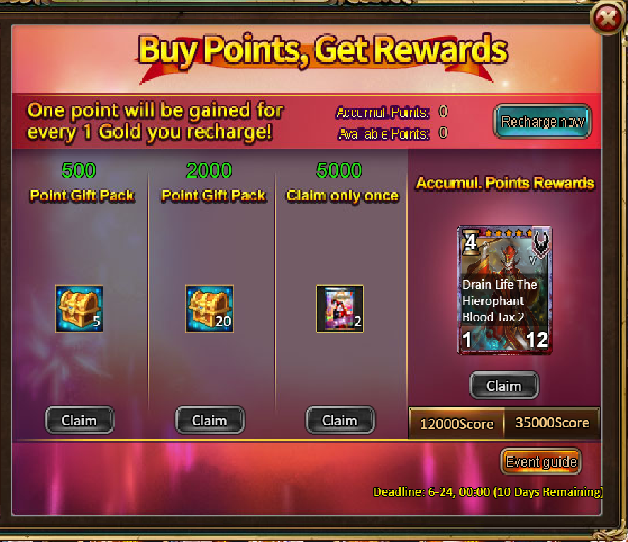 2.Buy Points, Get Rewards: 12000 - The Hierophant (Legendary) / 35000 - The Hierophant (Godlike)