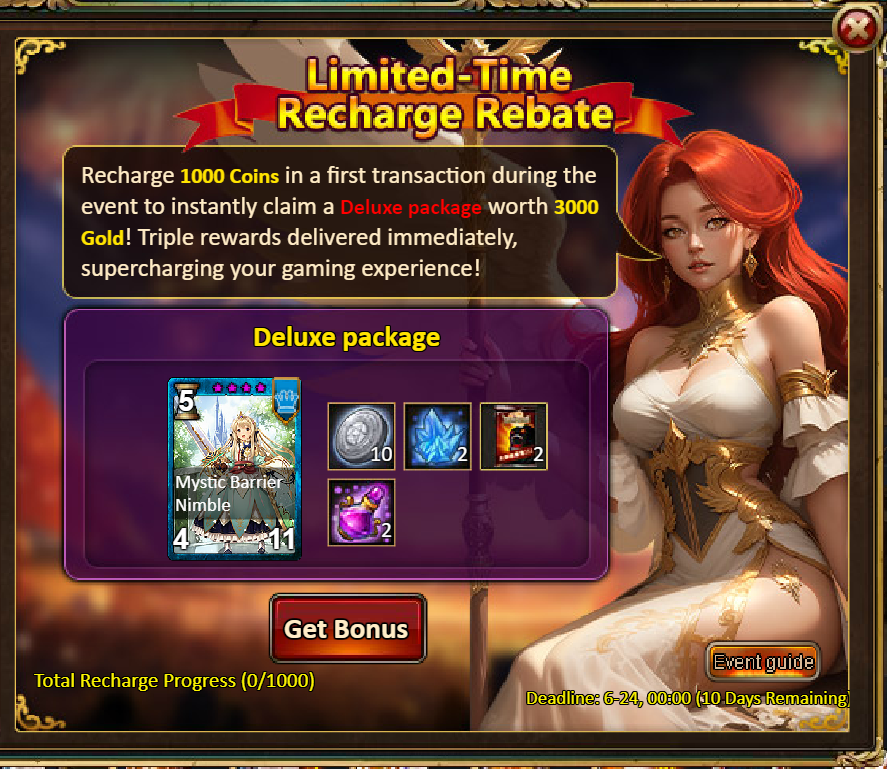 3.Recharge Big Rebates: 9000 - Idelr (Legendary) / 35000 - Idelr (Godlike)