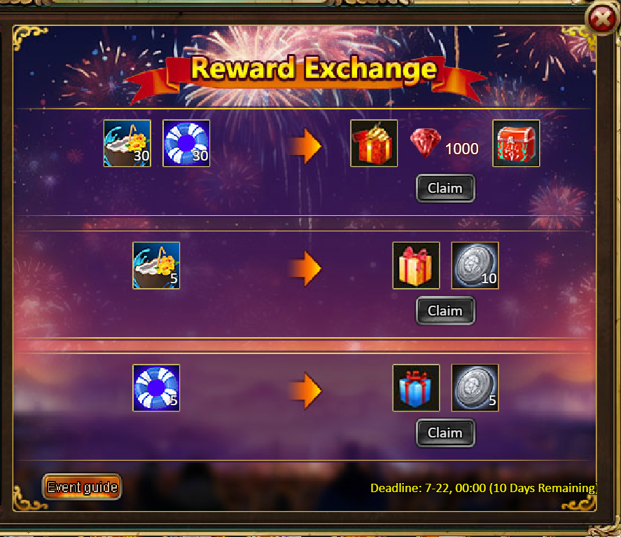 [b]7-Day Login Rewards[/b]: Log in daily to receive a Summer Day Exchange Material Box!