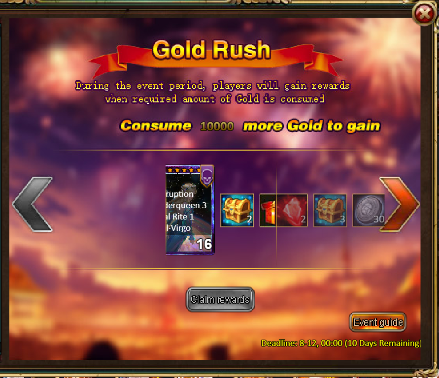 [u]Consume 10,000 gold coins: Real·Virgo (Legendary)*1, Solar Chest (Legendary)*2. Pet Pleasure*1