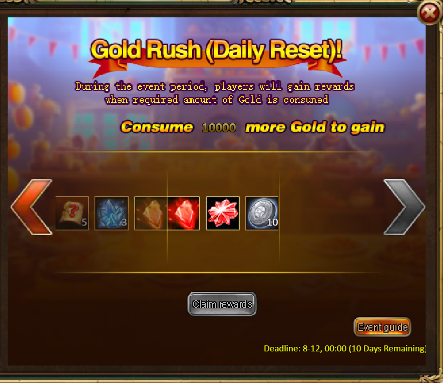 Consume 50,000 gold coins: Black Opal*1, Solar Chest (Legendary)*4, Pet Pleasure*5