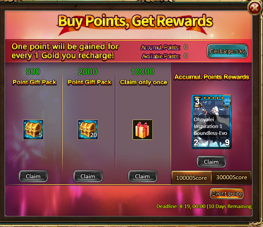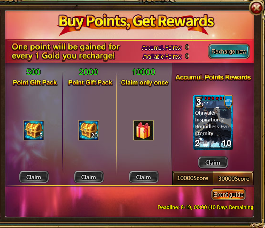 4.Buy Points, Get Rewards: 10000 - Archmage of Eternity (Legendary) / 30000 - Archmage of Eternity (Godlike)