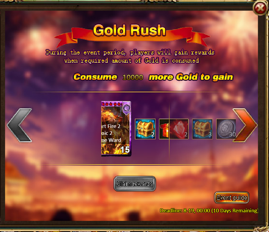 Consume 30,000 gold coins: Fire Ruby*2, Solar Chest (Legendary)*3, Silver*3,000,000