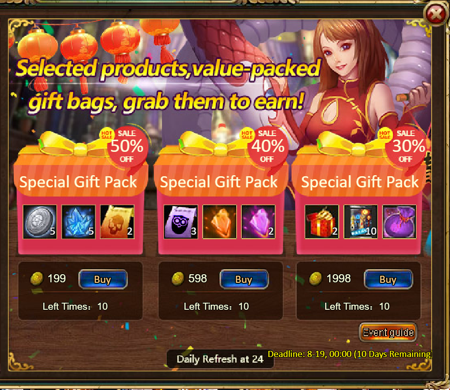 [u]Consume 10,000 gold coins: Flame Girl EX (Godlike)*1, Solar Chest (Legendary)*2. Pet Pleasure*1