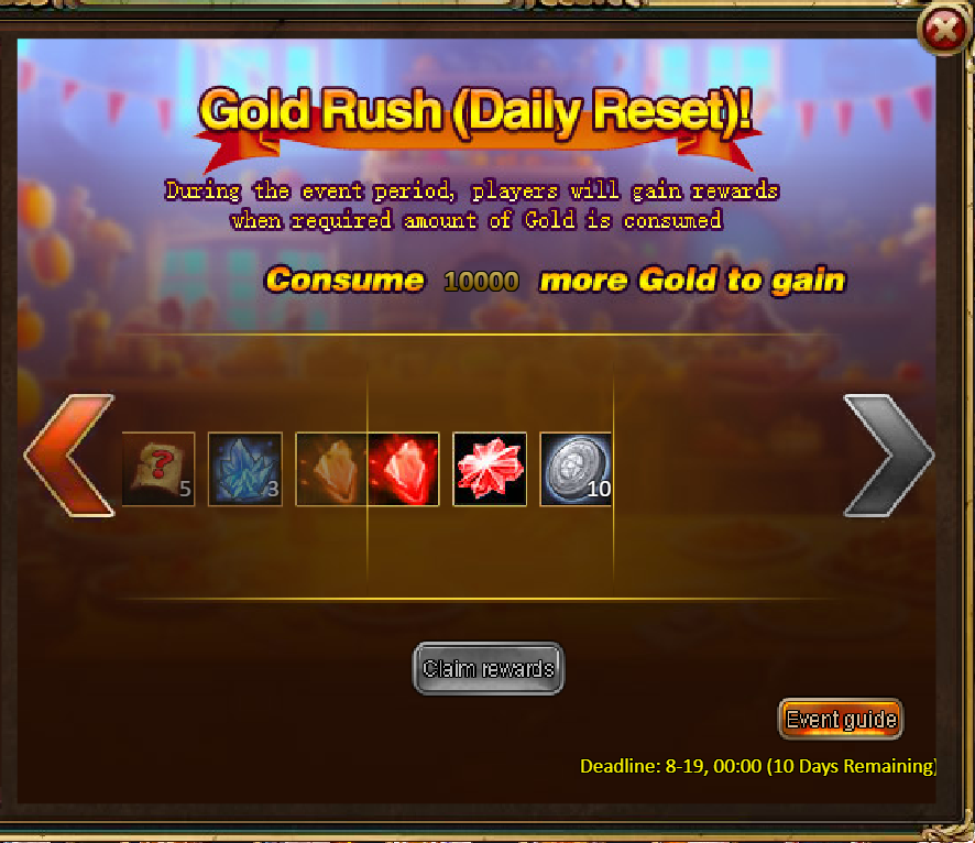 Consume 50,000 gold coins: Black Opal*1, Solar Chest (Legendary)*4, Pet Pleasure*5