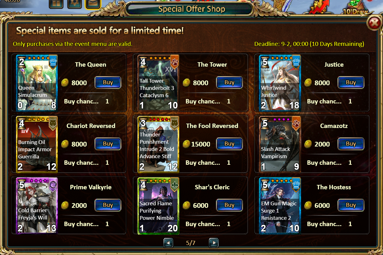 Consume 5,000 gold coins: Crystal Gift Box*3, Unbound Skill Tome Shard (Good)*5, Fire Opal*1