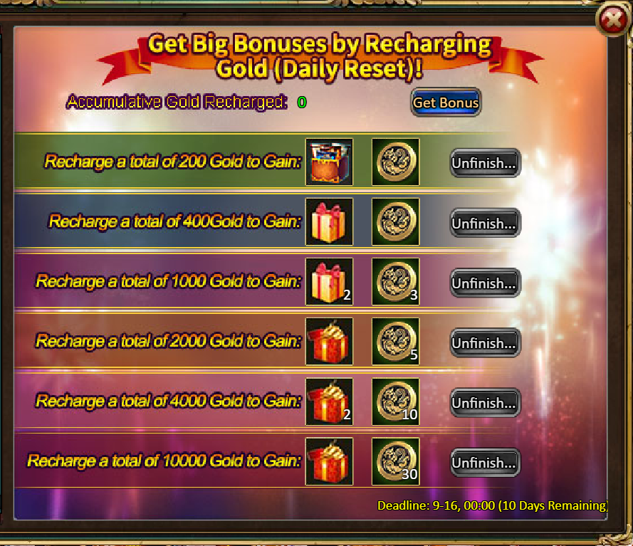 Consume 90,000 gold coins: Black Opal*1, Solar Chest (Legendary)*6, Silver*5,000,000[/u]