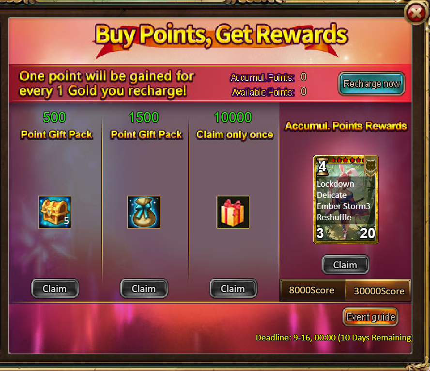 2.Red Diamond Storm: Red Diamond*2000 / Demon Box*1 / Silver*50,000