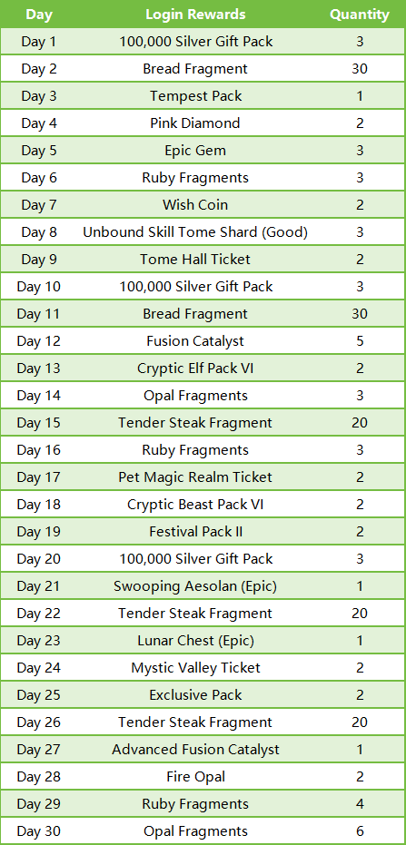 7.30-day Login Reward