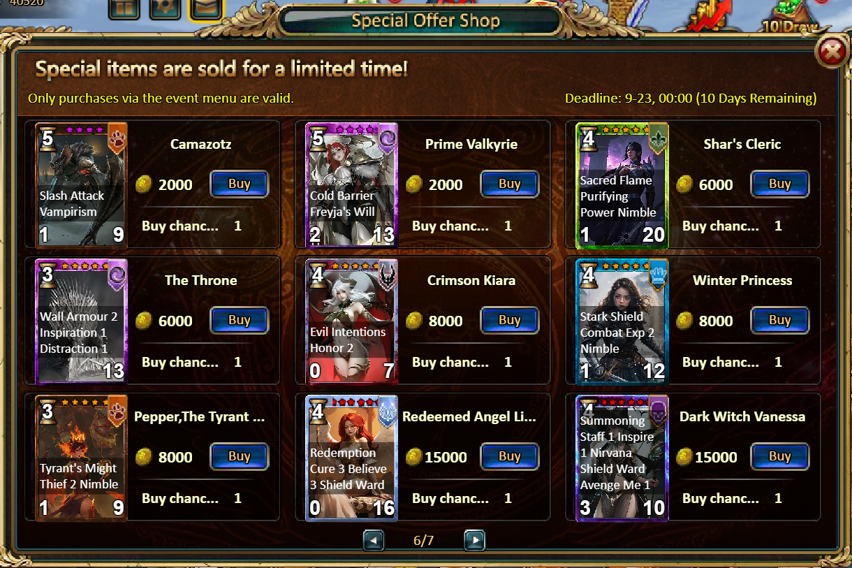 Consume 1,000 gold coins: Mystic Valley Ticket*2, Angel Box (Rare)*2, Silver*50,000