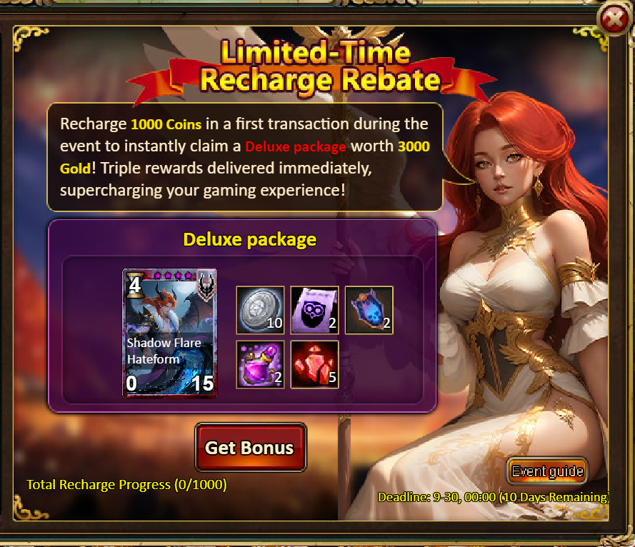 5.Cumulative Gold Rebate: 10000 -Abaddon (Legendary) / 30000 - Abaddon (Godlike)