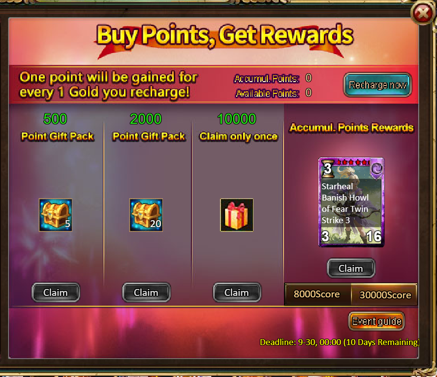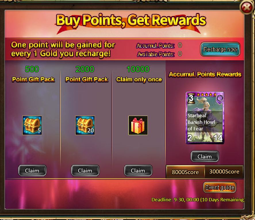 4.Buy Points, Get Rewards: 8000 - Celineia (Legendary) / 30000 - Celineia (Godlike)
