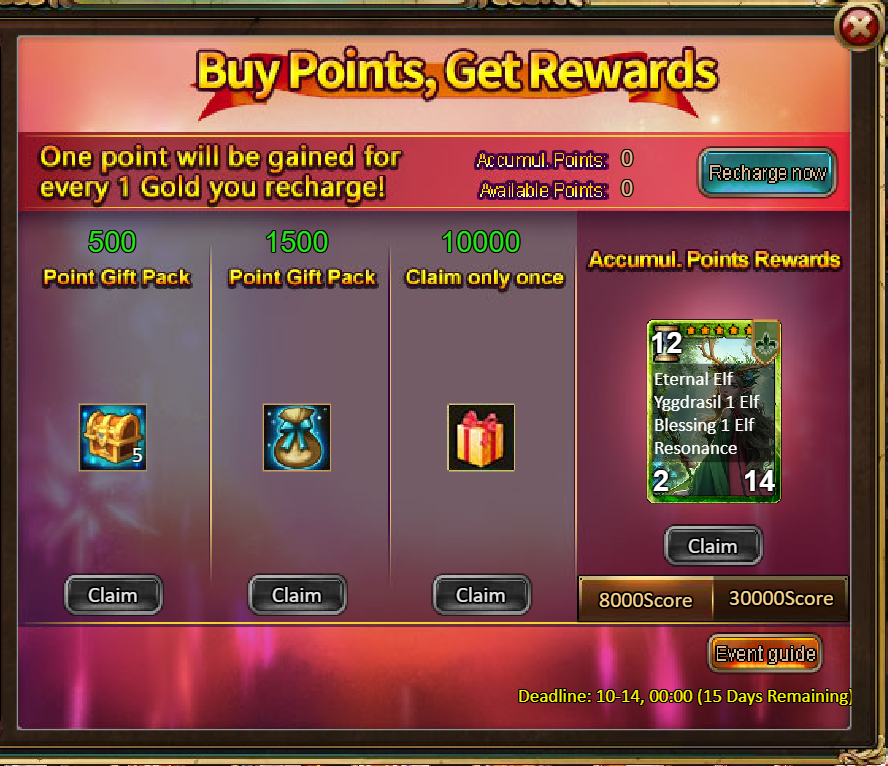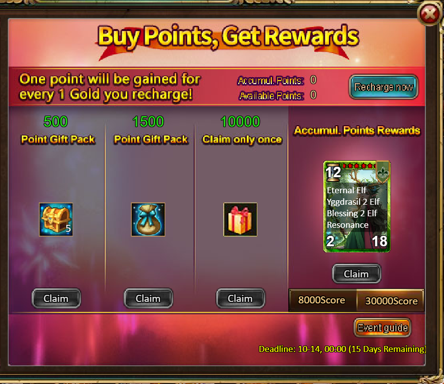 4.Buy Points, Get Rewards: 8000 - Queen Leanara (Legendary)*1 / 30000 - Queen Leanara (Godlike)*1