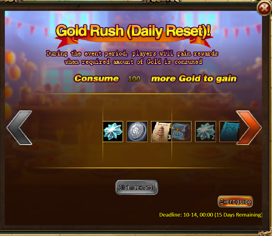 Consume 50,000 gold coins: Black Opal*1, Solar Chest (Legendary)*4, Pet Pleasure*5