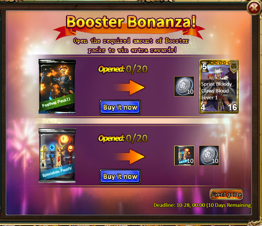 [b]11.Pack (Limited Time Event) - Booster Bonanza[/b]
