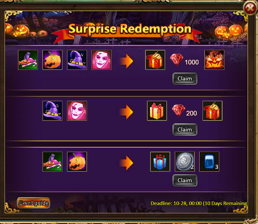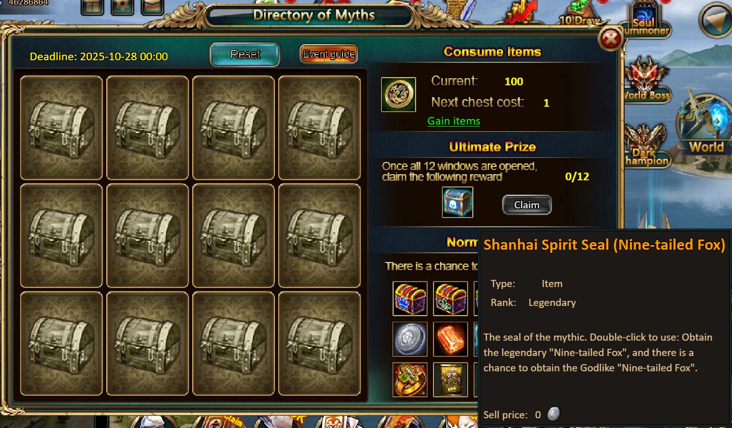 Consume 90,000 gold coins: Black Opal*1, Godlike Box II*6, Solar Chest (Legendary)*6, Silver*5,000,000[/u]