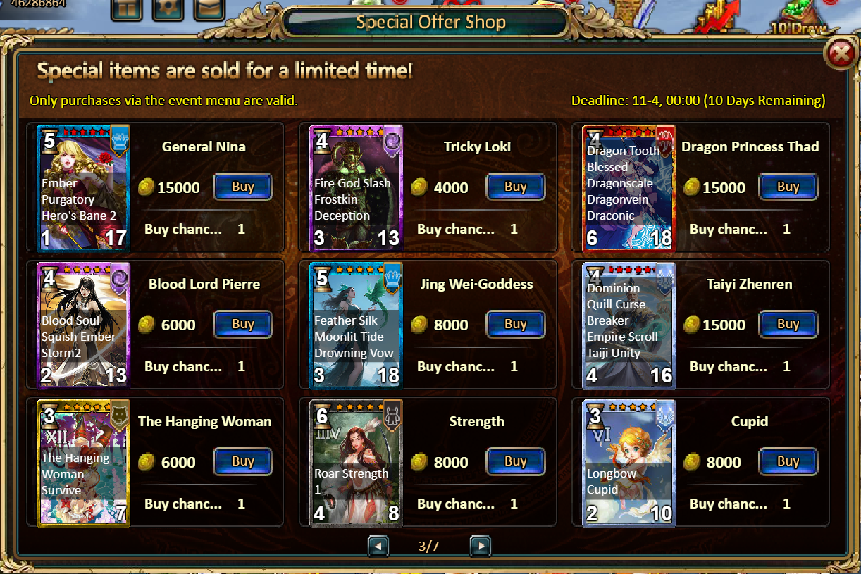 Consume 30,000 gold coins: Fire Ruby*2, Godlike Box II*2, Silver*3,000,000