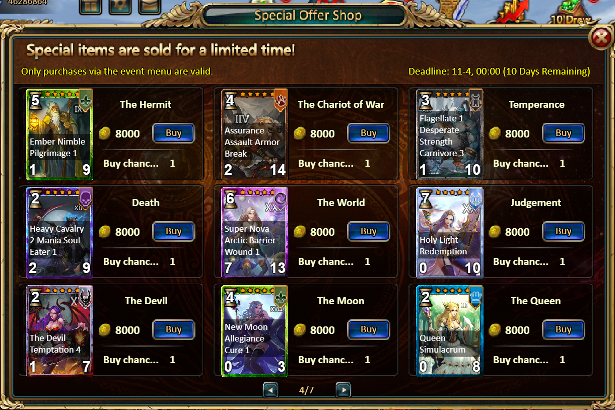 Consume 70,000 gold coins: Fire Ruby*2, Godlike Box II*4, Silver*4,000,000