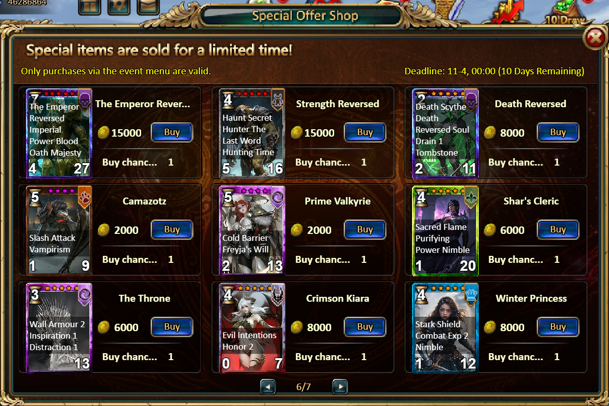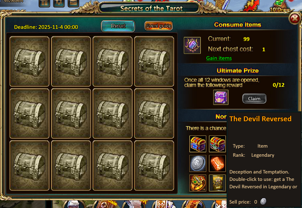 Consume 90,000 gold coins: Black Opal*1, Godlike Box II*6, Solar Chest (Legendary)*6, Silver*5,000,000[/u]