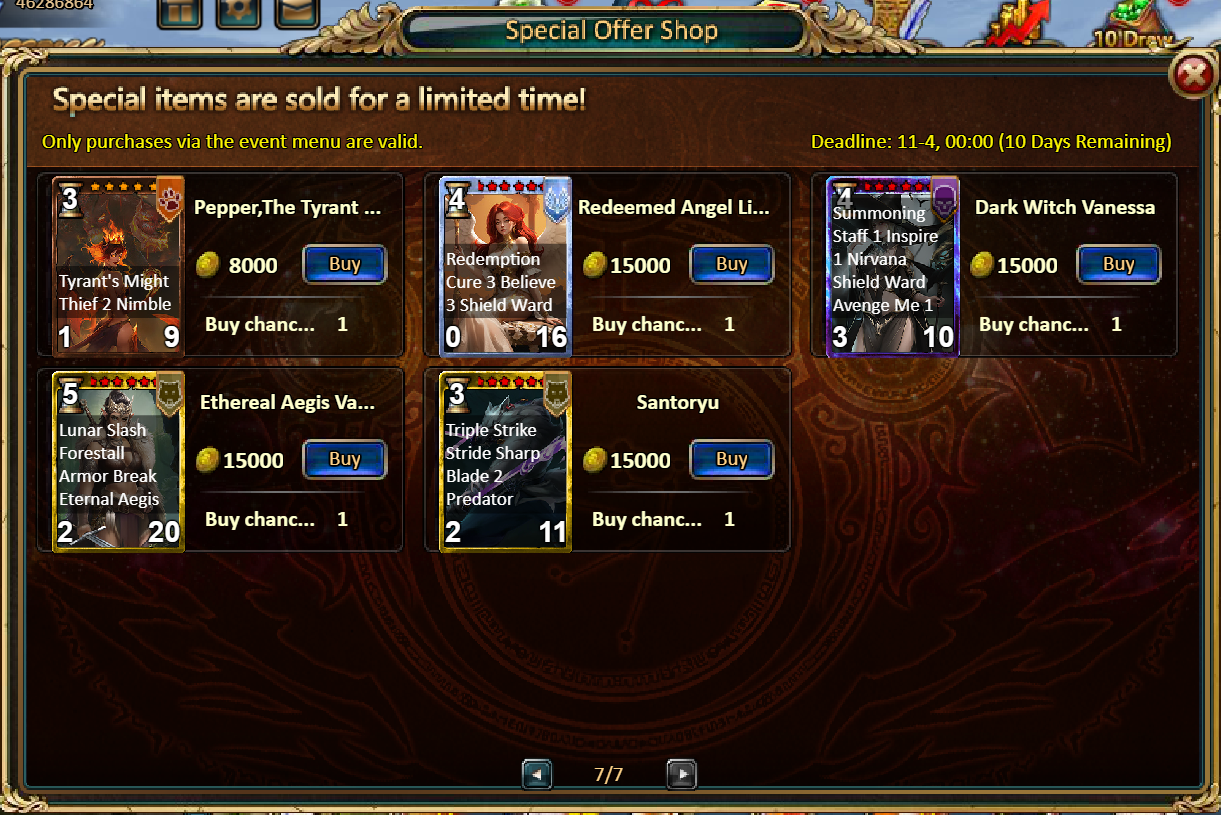Consume 10,000 gold coins: Fire Ruby*1, Advanced Fusion Catalyst*1, Silver*1,000,000[/u]