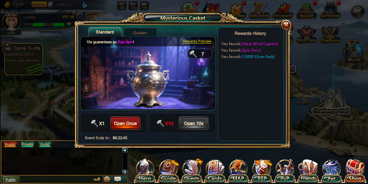 Dear Adventurers, To bring you a richer gaming experience and exciting surprises, a brand-new limited-time benefit system—the [b]Mysterious Casket[/b] — is about to be introduced in an upcoming version update! Full of endless possibilities, it hides rare items and legendary treasures, waiting for your lucky strike. Let’s take a sneak peek! [u][b](This announcement is based on test server. Actual features are subject to the official release.)[/b][/u] Gameplay Introduction [b]1.Open Caskets, Receive Surprises[/b] [b]Exclusive Item “Magic Hammer”: [/b]Opening a casket requires consuming the exclusive item [Magic Hammer]. The hammer can be purchased directly from the shop or daily event. [b]Single Draw & 10x Draw: [/b]You can choose to consume 1 Magic Hammer to open one casket, or open ten at once! When performing a 10x draw, you are guaranteed to receive an [Epic] (or higher) precious item! [b]2.Generous Rewards, Fully Transparent[/b] [b]Reward Preview Function: [/b]We believe in fairness and transparency. Click the “Reward Preview” button in the interface to view all possible items available in this Mysterious Casket event. Every surprise has its trace. [b]3.Highlight Moments, Shared Server-Wide[/b] [b]Personal Record Tracking: [/b]All items obtained from each draw will be clearly displayed in the “Rewards Obtained” interface. Identical items will be merged automatically for easy tracking. [b]Server-Wide Glory Announcement: [/b]When you obtain an extremely rare item from the casket, a server-wide announcement will be broadcast: “Congratulations to [Player Name] for obtaining a legendary item in the Mysterious Casket event!” Let your luck become the focus of all adventurers! The “Mysterious Casket” system is designed to bring surprises to adventurers at all stages. We can’t wait to see the joy on your faces when you open the caskets! Stay tuned for the version update announcement—more details will be revealed soon. Good luck, adventurers!