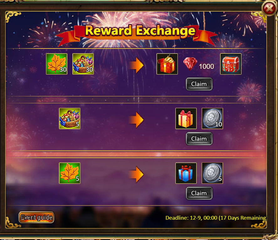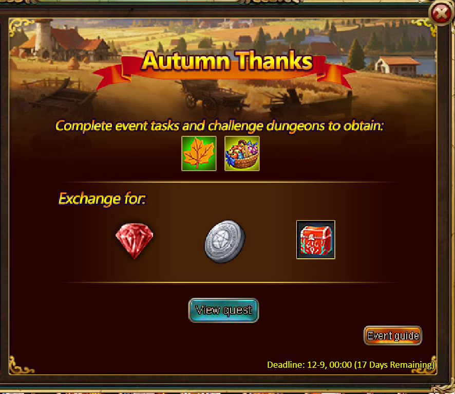 [b]Autumn Thanks:[/b]Defeat specific monsters daily to earn rewards and items.
