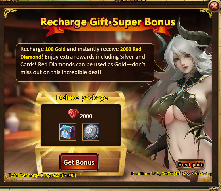 2.Red Diamond Storm: Red Diamond*2000 / Angel Box*1 / Silver*50,000