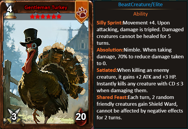 5.Cumulative Gold Rebate: 11000 - Gentleman Turkey (Legendary)*1 / 30,000 – Gentleman Turkey (Godlike)*1