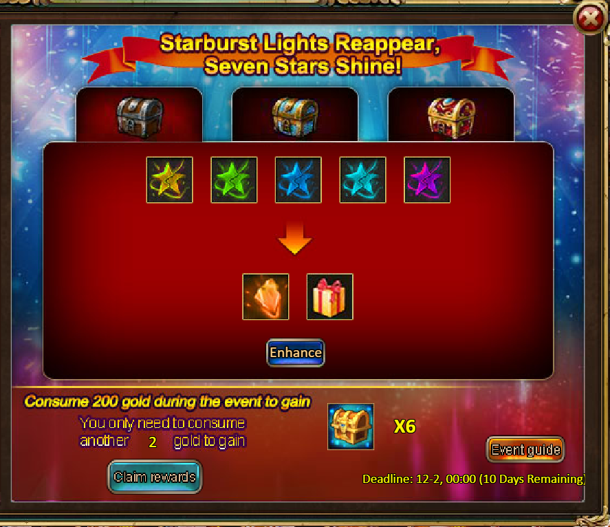 Consume 2,000 gold coins: Lunar Chest (Epic)*1, Fodder (Legendary)*10, Inferno Ticket*5