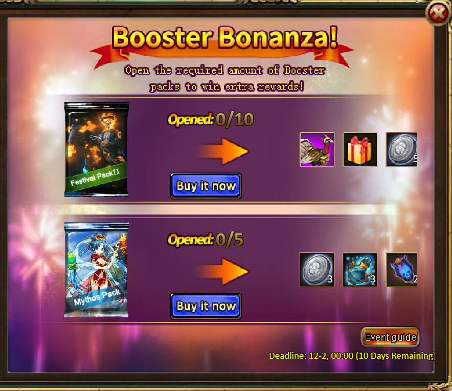 [b]13.Pack (Limited Time Event) - Booster Bonanza[/b]