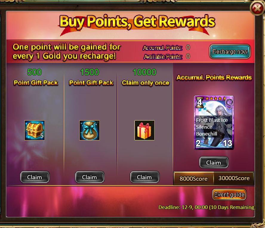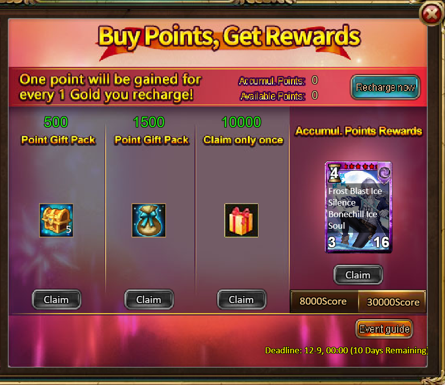 4.Buy Points, Get Rewards: 8000 - Ice Emperor Ymir (Legendary)*1 / 30000 - Ice Emperor Ymir (Godlike) *1