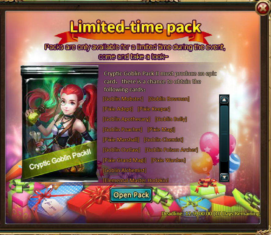 20 packs of Cryptic Goblin Pack II - Opal Fragment*9 / Legendary Box*2 / Silver*500,000