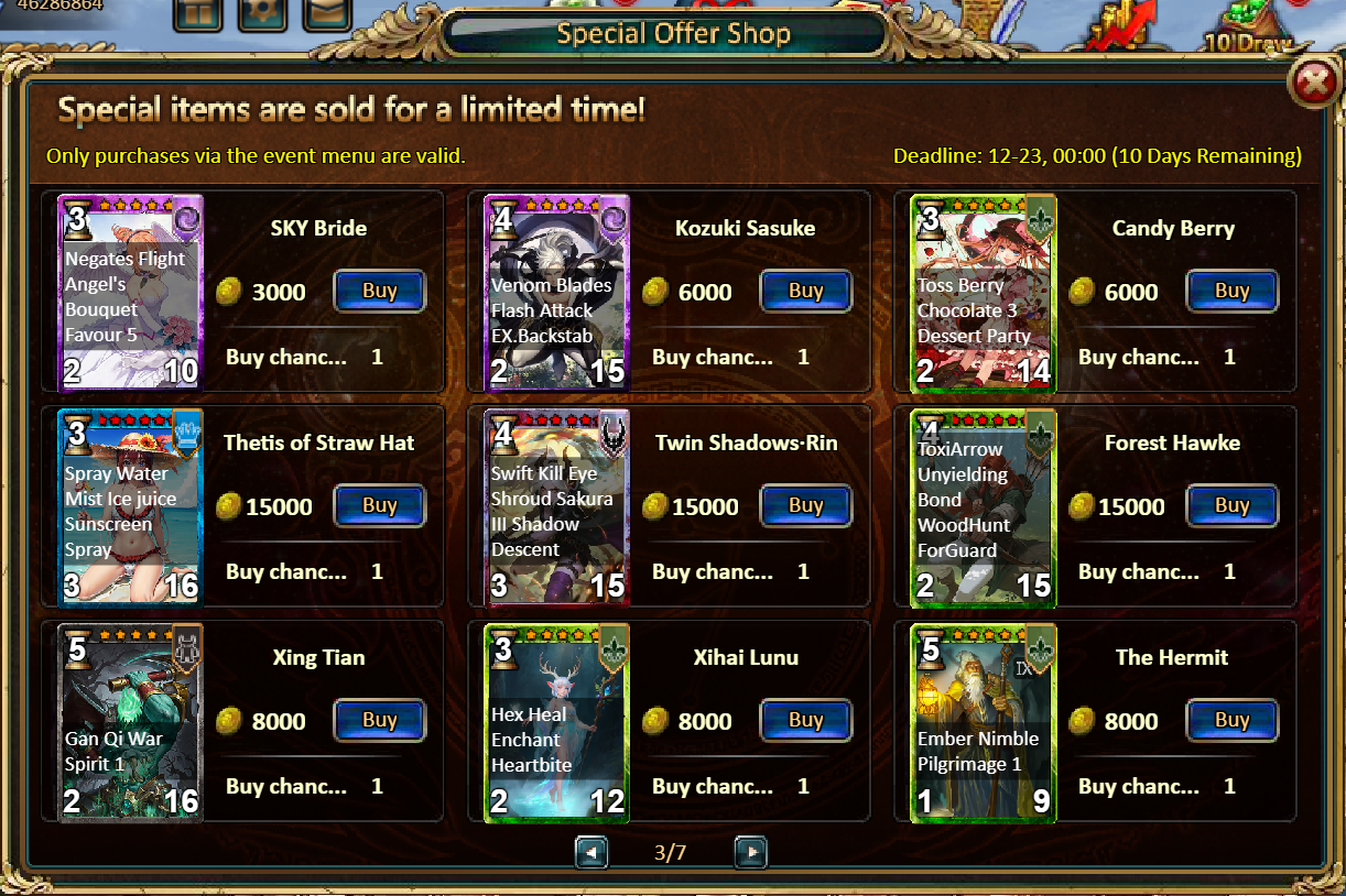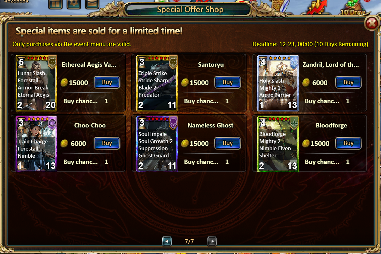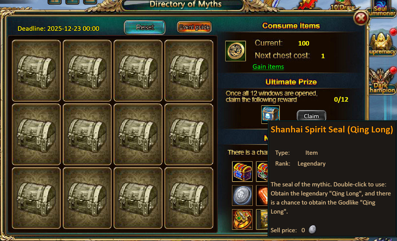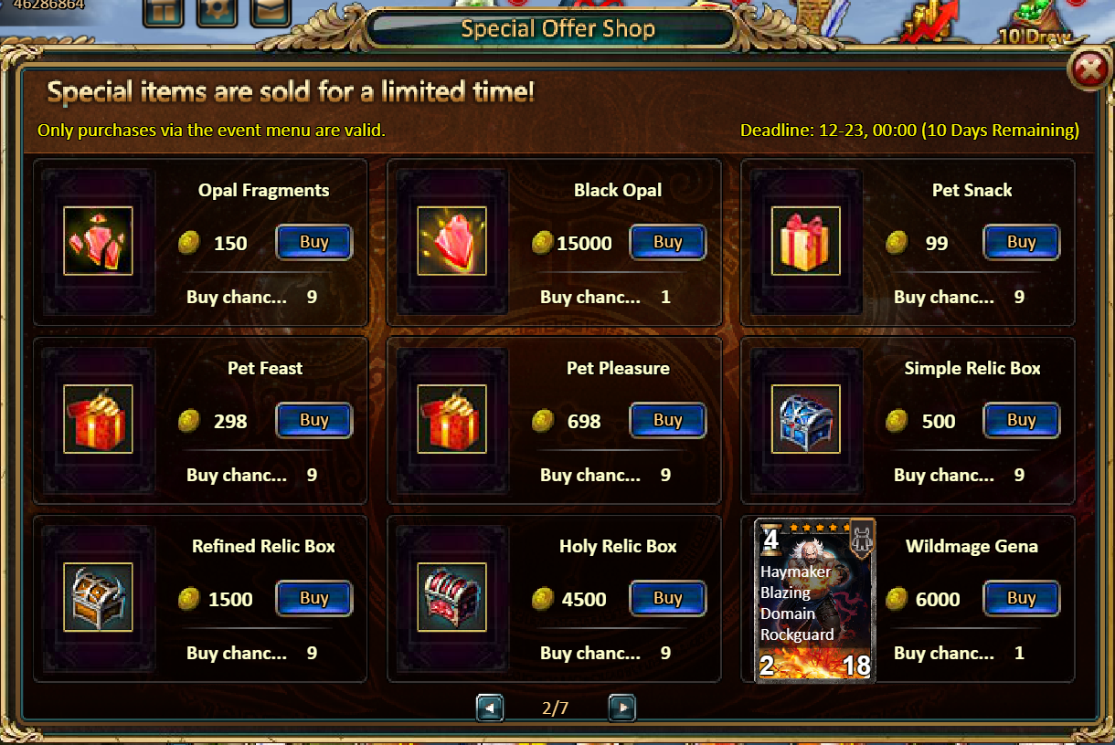 Consume 90,000 gold coins: Black Opal*1, Godlike Box II*6, Solar Chest (Legendary)*6, Silver*5,000,000[/u]